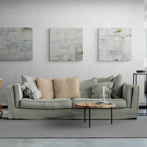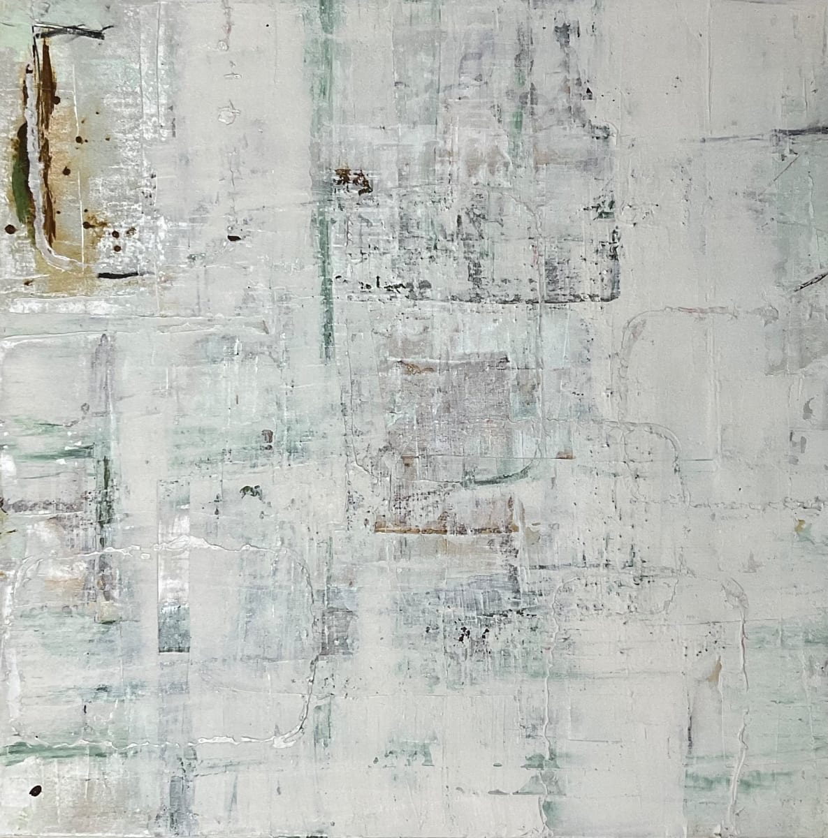 This piece, one of three, is evolved from the original concept of the use of iron oxide and rust activators. I then chose metallic green and pearlescent compound to scale back the predominant rust to bring out depth and mystery resulting in this luxurious composition.