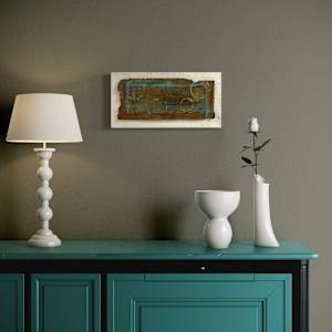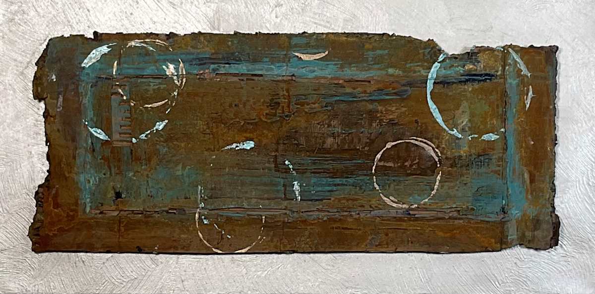 Mixed Media cardboard with iron oxide paint mounted on lime washed canvas